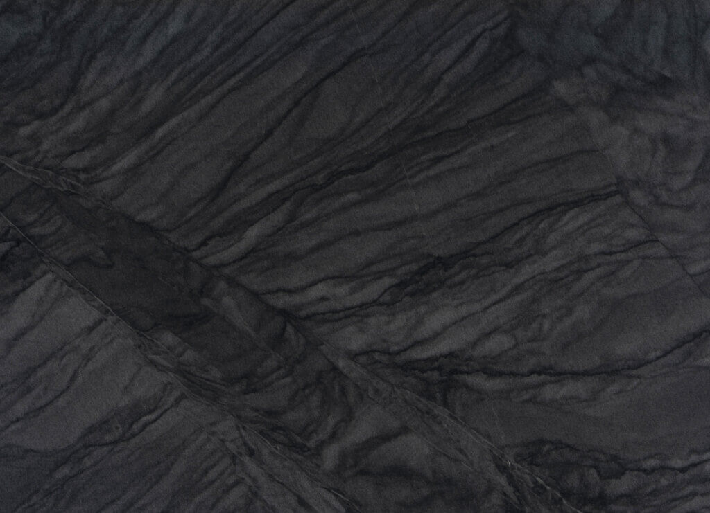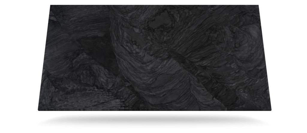 Brasiliansk kvartsitt med en mørk grå bakgrunn der lysere grå årer gir en følelse av bevegelse i materialet. Dette kraftfulle, naturlige designet gir en skjult eleganse ved denne nye, eksklusive steinen fra Sensa Premium-kolleksjonen som tilbys i Mirage polert overflate.