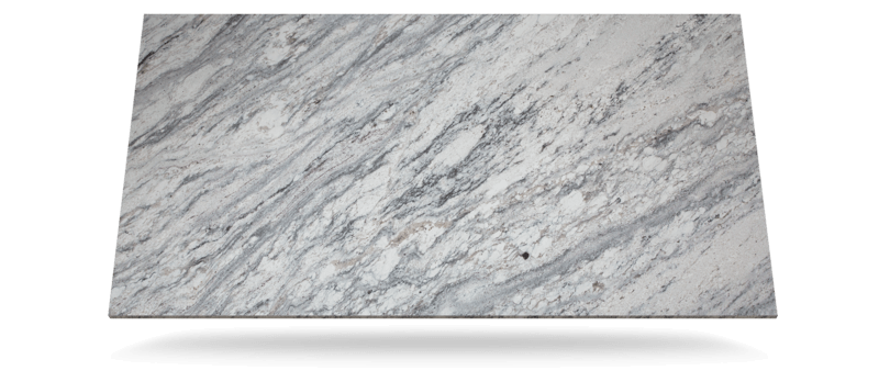 Indisk granitt med kraftfulle grå årer som gir den lyse bakgrunnen personlighet. Den glatte overflaten forsterker uttrykket ytterligere og gjør natursteinen til sentrum i ethvert miljø.